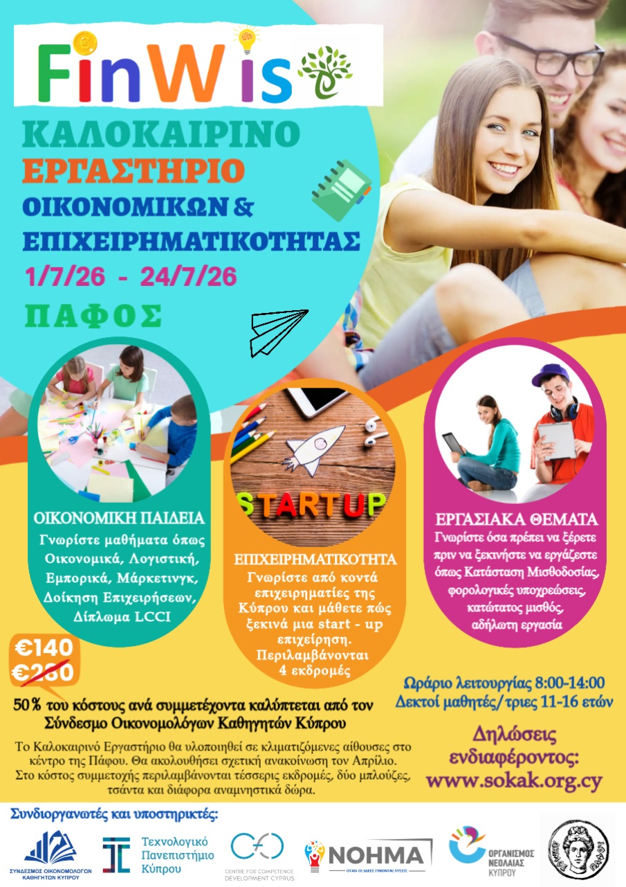 Είμαστε περήφανοι που πέρσι (2025) υλοποιήσαμε για πρώτη φορά το Καλοκαιρινό Εργαστήριο Οικονομικών και Επιχειρηματικότητας και που οι Οικονομολόγοι Εκπαιδευτικοί της Μέσης Εκπαίδευσης έχουν παραταχθεί εθελοντικά για την πραγματοποίησή του. Εκτιμούμε ότι το εργαστήριο θα αποτελέσει θεσμό που θα εδραιωθεί στην πόλη της Πάφου και θα συνεχίσει για πολλά χρόνια στο μέλλον.